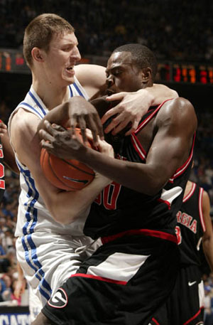 Instead, Georgia's brutish frontline bullied the Cats all over the floor in a game that featured 50 personal fouls, three technical fouls and an intentional foul. Despite shooting 39 percent from the field, UGA hit 27-of-35 free throws and used four Rashad Wright three-pointers to keep UK under their thumb.