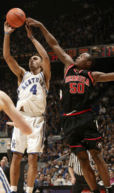 Gerald Fitch, who was UK's leading scorer at 18 points a game, had just 10 points on 2-of-9 shooting and struggled all game to get his shot off over 6-foot-7, 230 pound Damien Wilkins. Kelenna Azubuike, Cliff Hawkins, Josh Carrier and Antwain Barbour made a combined 5-of-24 shots between them as well.
