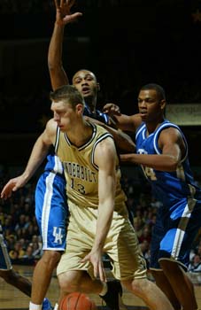 As Vanderbilt (14-4, 3-4) drew closer while the clocked ticked away, UK senior point guard Cliff Hawkins made three uncharacteristic turnovers in the final 2:30. Kentucky native Scott Hundley stole a Hawkins' entry pass, then the senior drove into traffic and lost the ball with just over a minute left. Hawkins' final miscue was having a pass batted up in the air and then stolen by Russell Lakey with 18 seconds remaining.