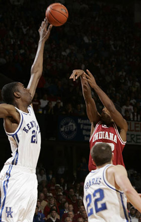 Although UK was dominating in the paint, Indiana hung around because of the outstanding shooting of Bracey Wright. Wright scored 31 of the Hoosiers' 58 points and made six three-pointers to keep the game close. But the Cats ripped off a 16-2 spurt in the second half after IU had closed within 42-37 on an A.J. Ratliff three-pointer.