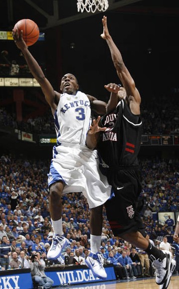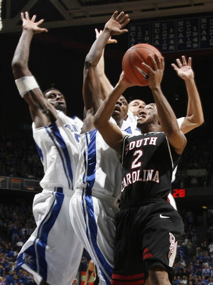 USC's Devan Downey goes into the Kentucky trees to attempt a shot.