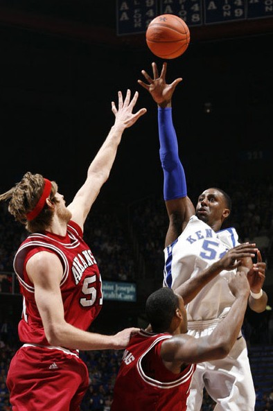Trailing 55-54 with 2:36 remaining after Sonny Weems swooped in for a floater in transition the Cats did not allow another field goal until Weems drove to the basket to cut the UK lead to three with 7.0 on the clock. In the meantime, Joe Crawford hit a free throw to tie the game and then a fade away jumper by Ramel Bradley over fellow Brooklynite Gary Ervin gave UK the lead for good with 1:16 remaining. Bradley hit 4-of-6 free throws and Patrick Patterson made two attempts in the final 51.1 seconds to seal the win.