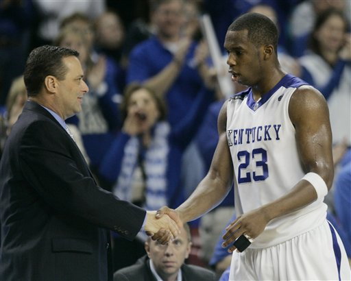 He is congratulated by his coach on his record setting day (most points by a UK player in Freedom Hall)