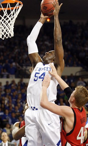 Patrick Patterson (#54) scores inside as UNLV's Joe Darger defends