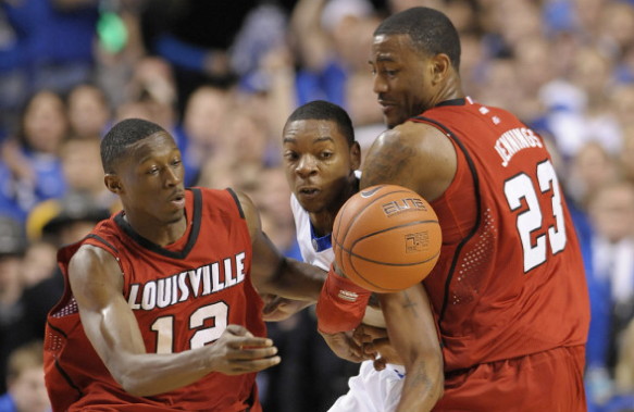 Calipari's last point was debatable, although Louisville had its own problems harnessing the raw emotions associated with a game that meant so much to an entire state. It took only eight seconds for officials to warn players from both teams about the extracurricular activity, as UK's Eric Bledsoe and Louisville's Reginald Delk jawed at each other after Bledsoe was whistled for a foul. Before the contest was a minute old three technical fouls had been assessed after a scramble for a loose ball, setting the tone for what was a hotly contested and sometimes downright primal affair.