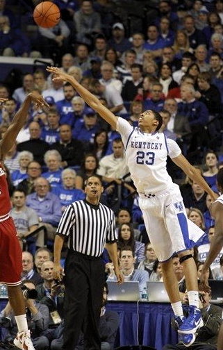 Anthony Davis (#23) records one of his 7 blocks, helping him break the record for most blocks in a season by a UK player.