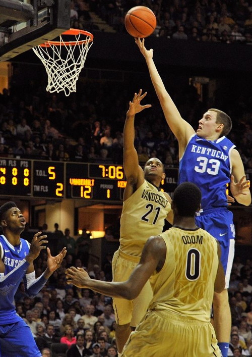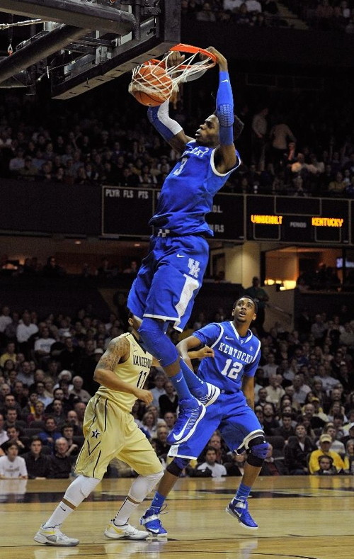 Archie Goodwin (#10) goes horizontal as he charges into Vanderbilt's Josh Henderson (#40)