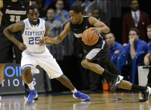 Dominique Hawkins (#25) tries to stay in front of Providence's Bryce Cotton
