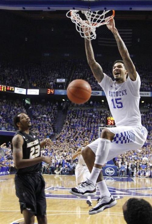 Willie Cauley-Stein (#15) dunks in front of Missouri's Jakeenan Gant