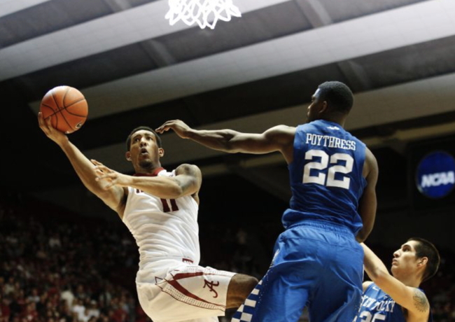 Alex Poythress (#22) defends against Alabama's Shannon Hale (#11)