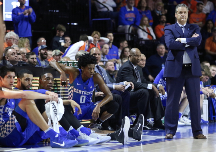 John Calipari looks on as his players get ready to enter the game