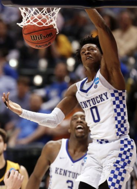 Malik Monk (#5) drives ahead of NKU's Carson Williams (#23) and Dantez Walton (#32)
