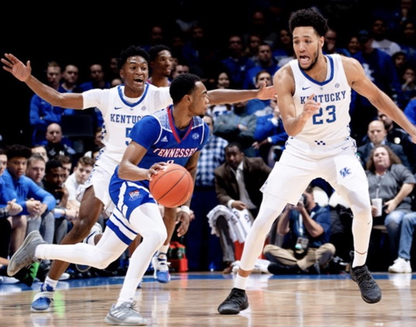 Immanuel Quickley and E.J. Montgomery (#23) defend the perimeter