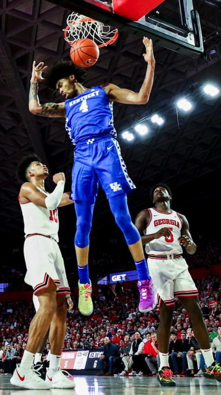 Immanuel Quickley (#5) shoots while defended by Georgia's Jordan Harris (#2)