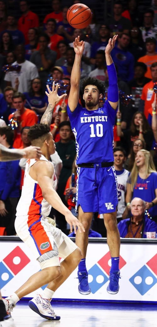 Johnny Juzang (#10) shoots