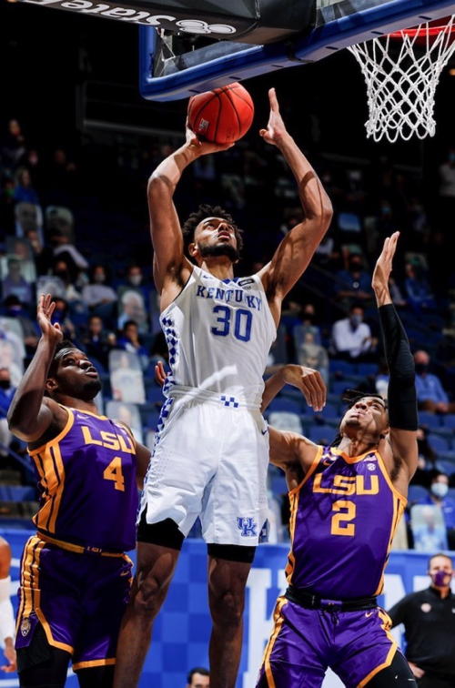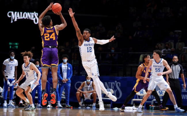 Keion Brooks (#12) defends against LSU's Cameron Thomas (#24)