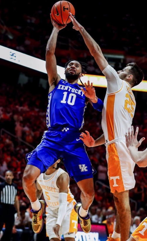 Davion Mintz (#10) shoots over Tennessee's Santiago Vescovi (#25)