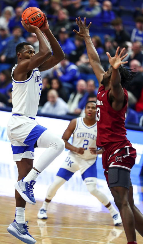 Lance Ware (#55) dunks in front of South Carolina's Benjamin Bosmans-Verdonk (#31)