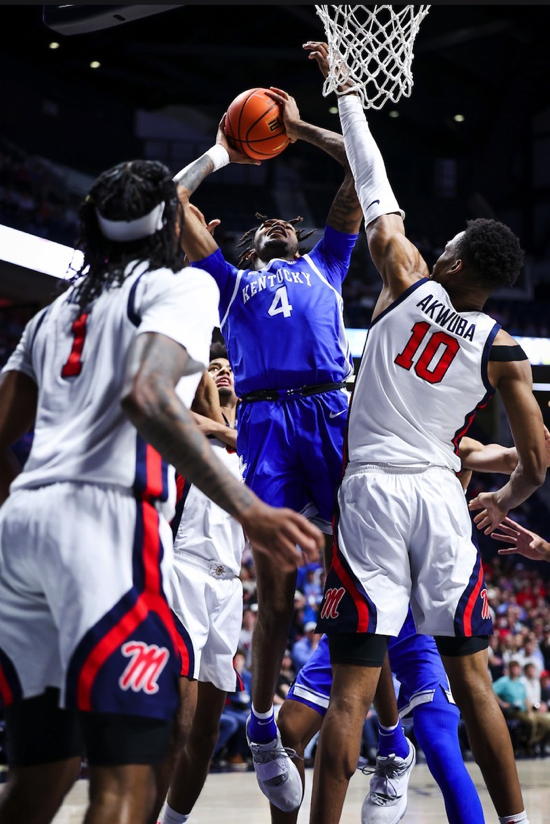 Daimion Collins (#4) works inside against Ole Miss' Theo Akwuba (#10)