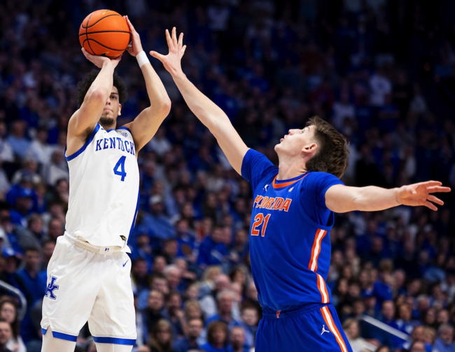 Koby Brea shoots a three-pointer over Florida's Alex Condon (#21)