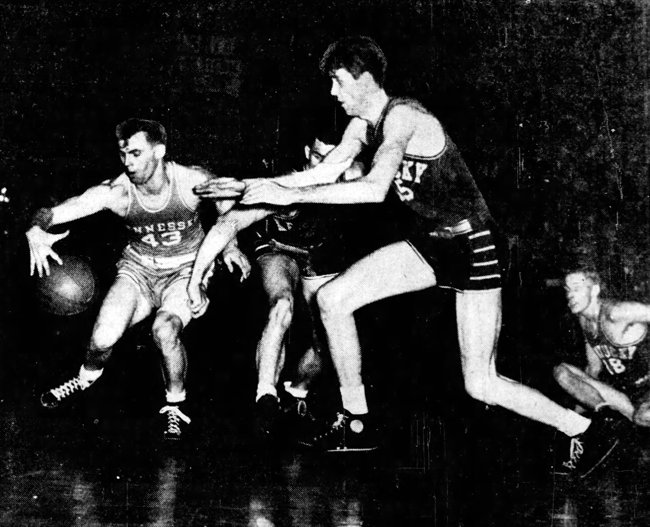 Graduating from New Albany high school in 1938, he enrolled a year later at the University of Kentucky, where he became nationally known as one of the greatest hoop centers in collegiate circles. He left U of K in 1943 to join the armed forces. He received officers training at Fort Benning, Ga.