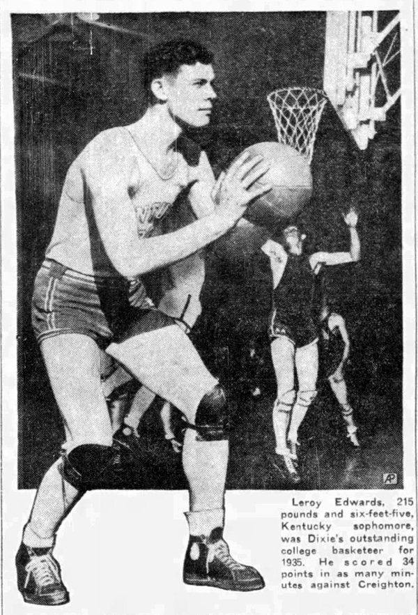 Last night Adolph Rupp, the Kenucky coach then as now, said: "Cowboy was a wonderful athlete, contributed a great deal to basketball and he wasn't necessarily a 'big boy' either." (Edwards was 6 feet 4 inches and weighted around 200 pounds). "We at the university hate to hear of his death. He was strong in everything, strong in basketball and strong in life as a man."