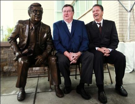 The mural depicts Hall from the second half of his head coaching days (1972-85) at Kentucky. Hall is shown decked out in a blue blazer, clutching his familiar rolled-up game program Ñ and wearing a ring representing the NCAA championship his 1978 team won for UK.