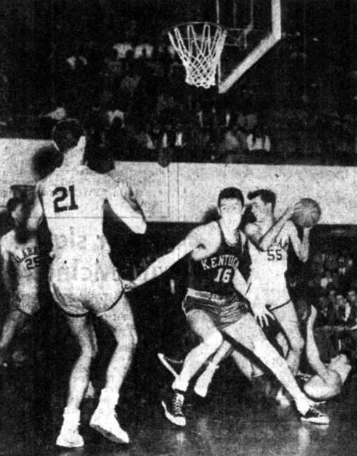 In the book Big Blue Machine, Russell Rice wrote about Paul "Bear" Bryant, then UK's football coach, asking Adolph Rupp if he'd seen the football prospect from Massachusetts.