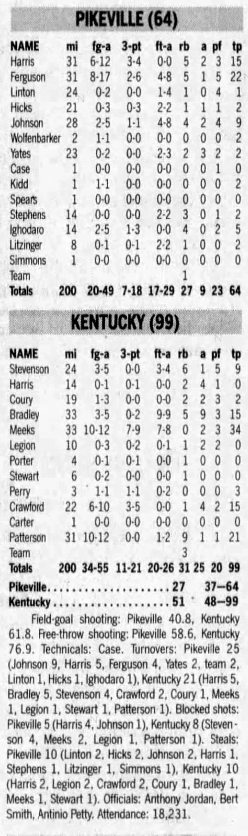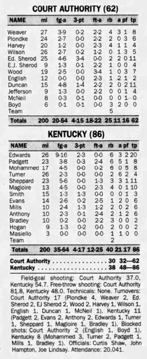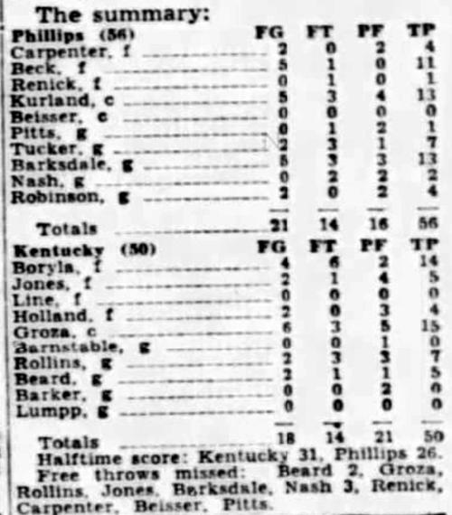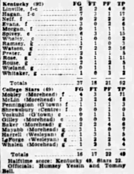 | 3/16/1933 | Seventeenth District All-Stars | W | 64-38 | Exhibition (at Hartford, KY)  |