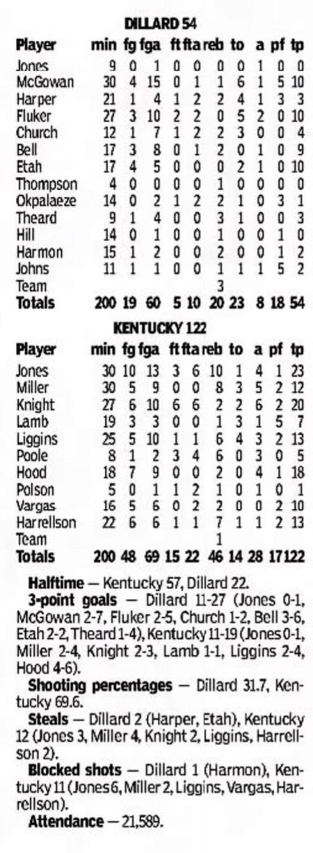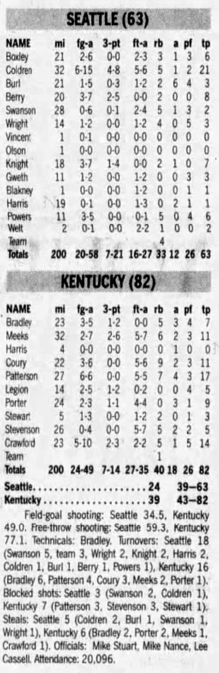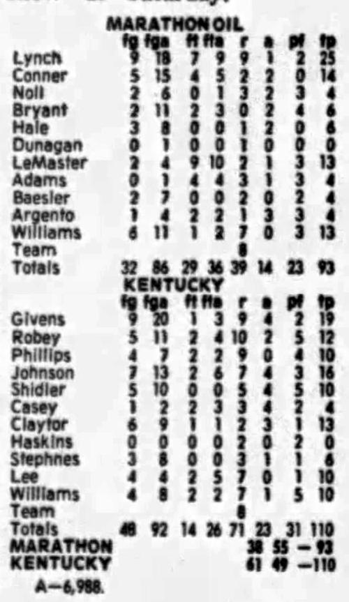 | 11/22/1976 | Marathon Oil | W | 110-93 | Exhibition (at Memorial Coliseum) |