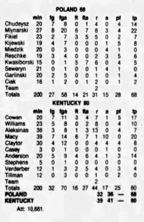 | 11/26/1978 | Poland | W | 80-68 | Exhibition  |