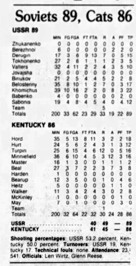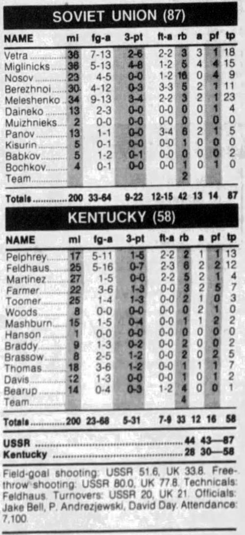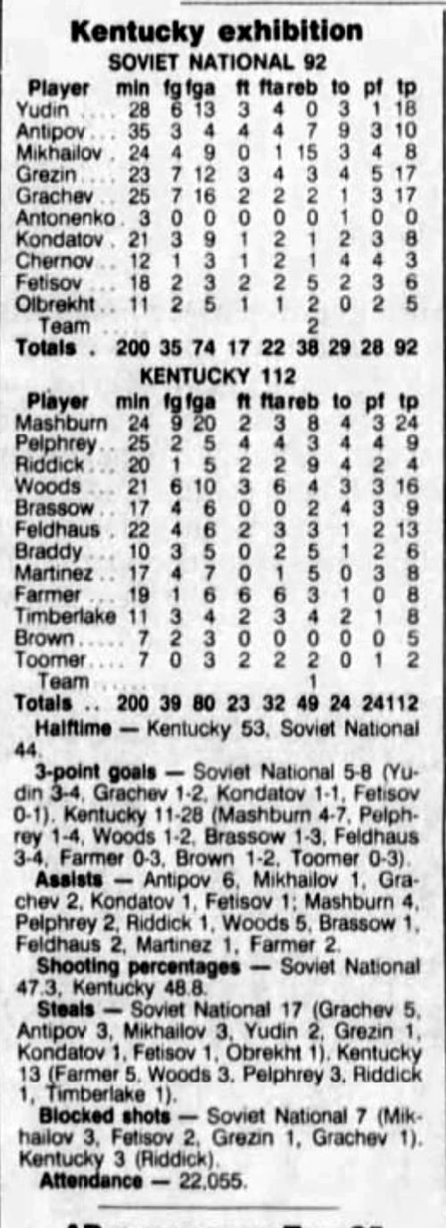 | 11/21/1982 | Soviet Union | L | 86-89 | Exhibition  |