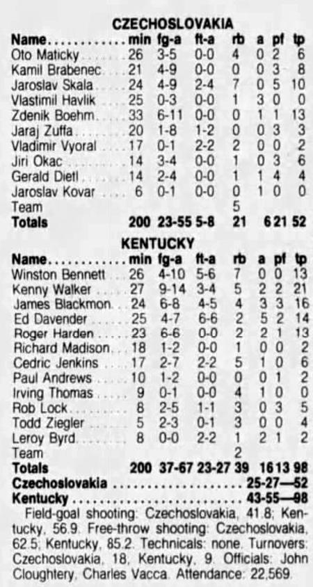 | 11/14/1985 | Czechoslovakia | W | 98-52 | Exhibition  |