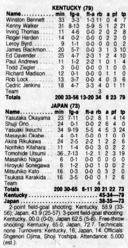 | 6/26/1986 | Japan | W | 79-73 | Exhibition (at Niigata, Japan)  |
