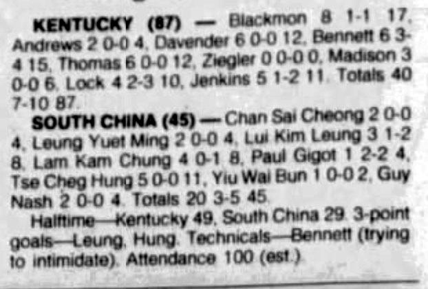 | 7/2/1986 | South China | W | 87-45 | Exhibition (at Hong Kong)  |