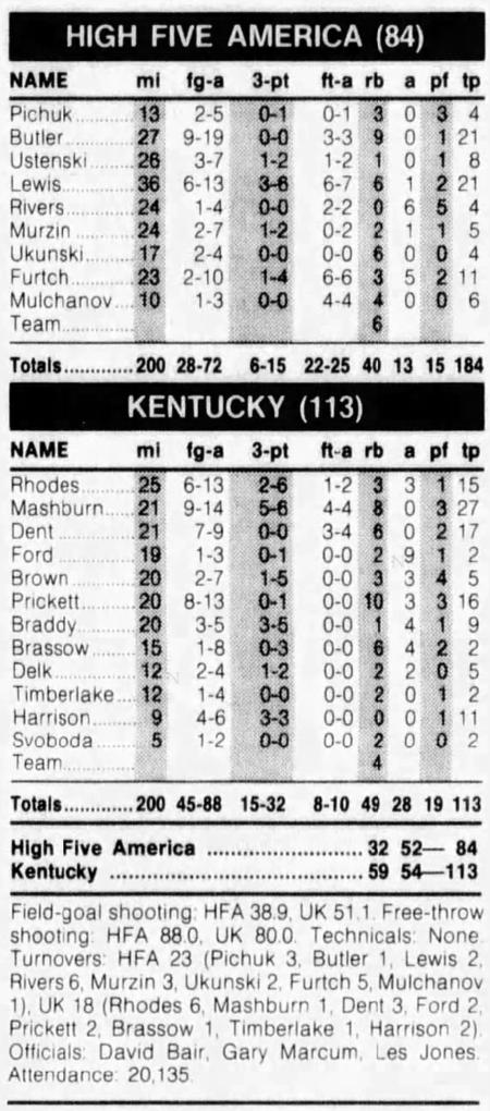 | 11/19/1992 | High Five America | W | 113-84 | Exhibition  |