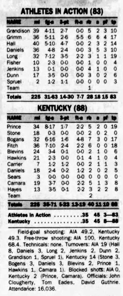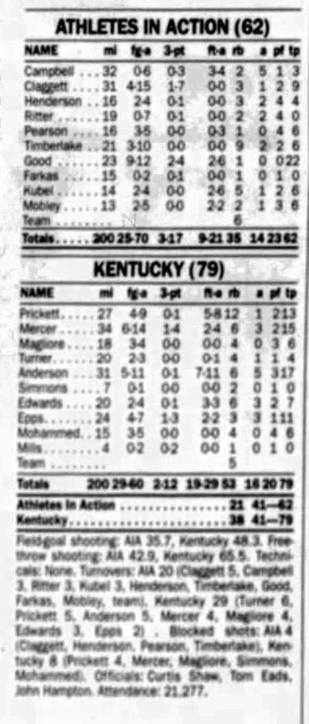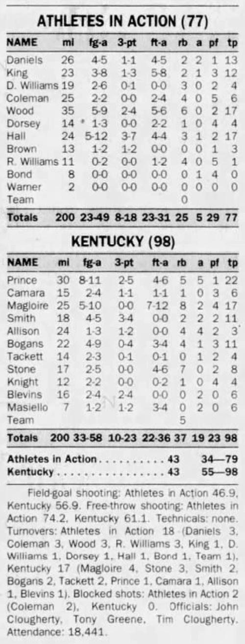 | 11/17/1995 | Athletes in Action | W | 119-80 | Exhibition  |