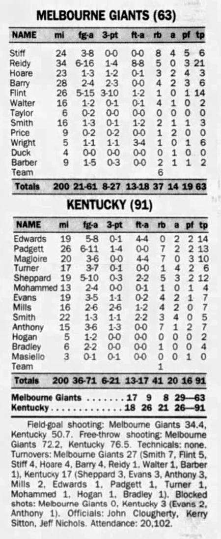 | 11/20/1996 | Melbourne | W | 84-51 | Exhibition  |