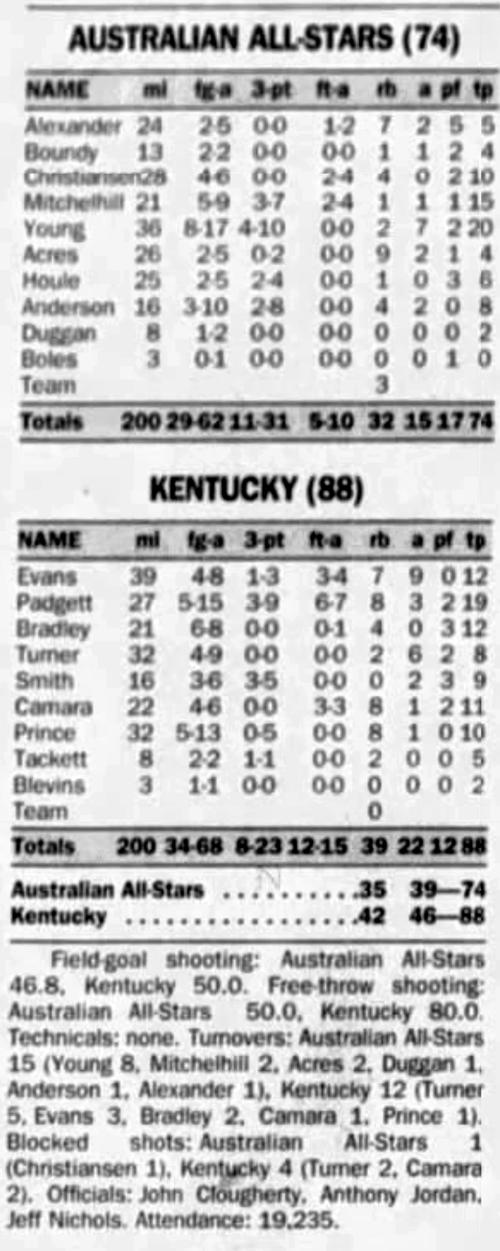 | 6/5/1974 | South Australian All-Stars | W | 111 - 84 | Exhibition  |