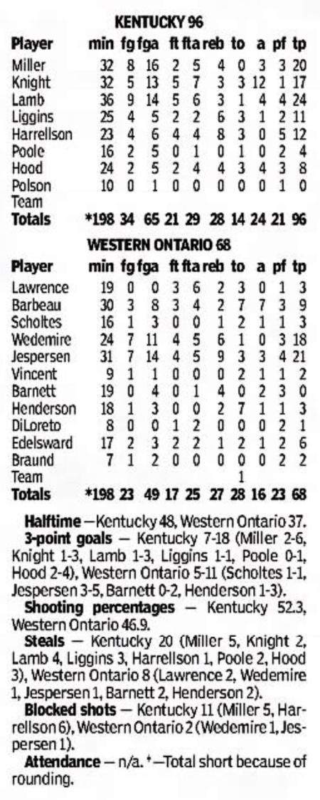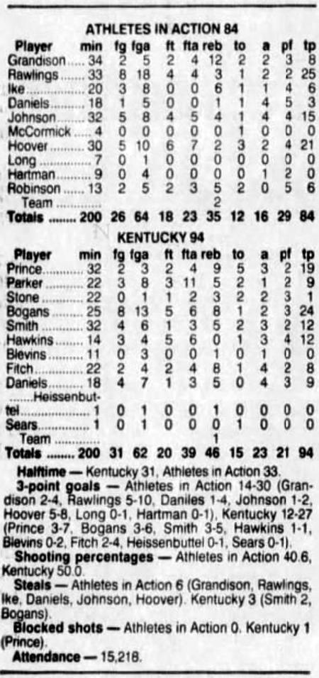 | 11/10/1991 | Athletes in Action | W | 82-77 | Exhibition (at Memorial Coliseum) |