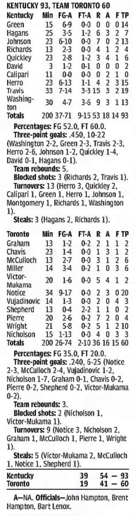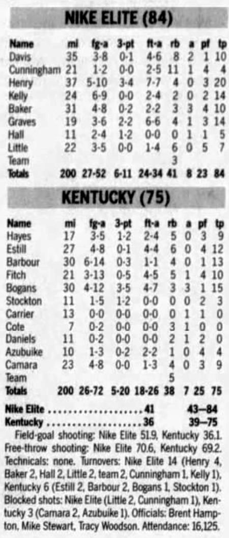 | 11/18/2002 | Team Nike | L | 75-84 | Exhibition  |
