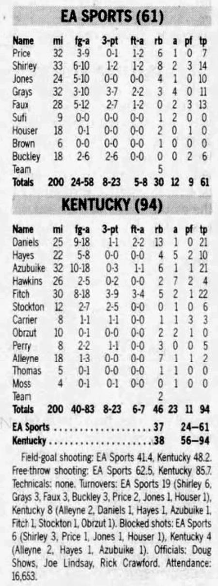 | 11/12/2003 | EA Sports | W | 94-63 | Exhibition  |
