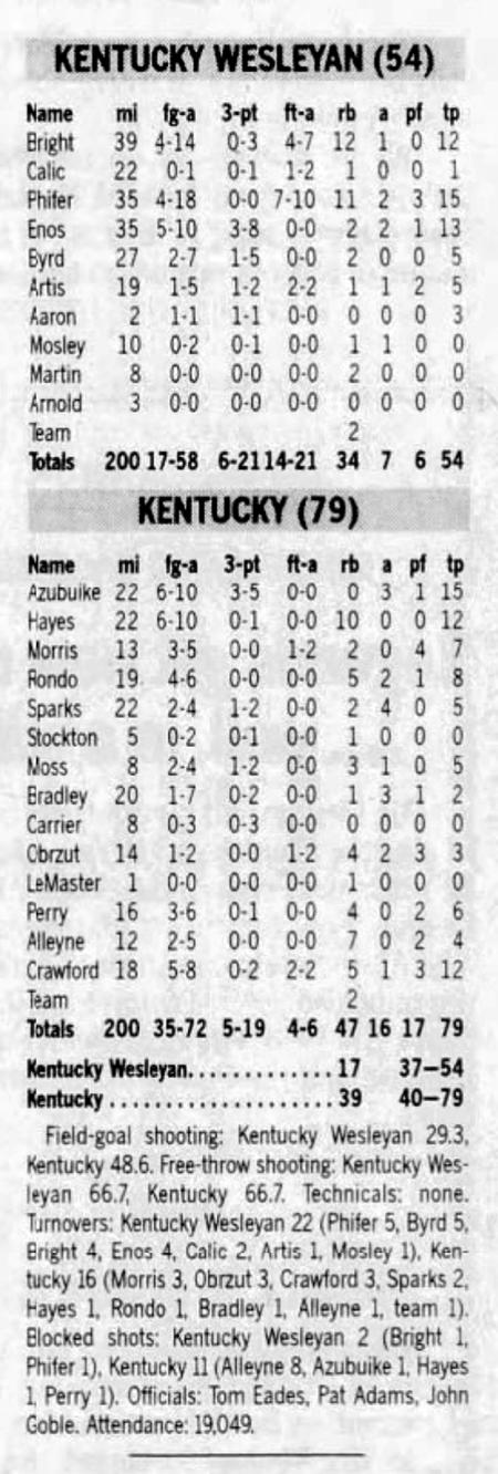 | 11/9/2004 | Kentucky Wesleyan | W | 79-54 | Exhibition  |