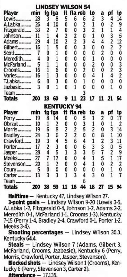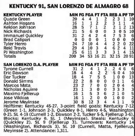 | 11/9/2014 | Georgetown College | W | 121-52 | Exhibition  |