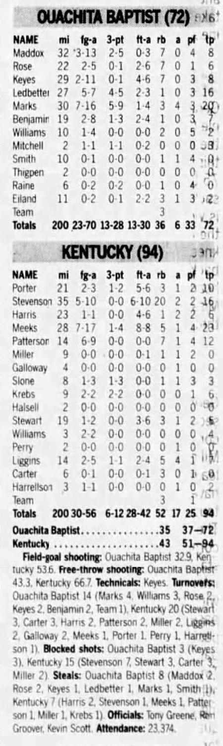 | 11/19/1993 | Athletes in Action | W | 94-78 | Exhibition  |