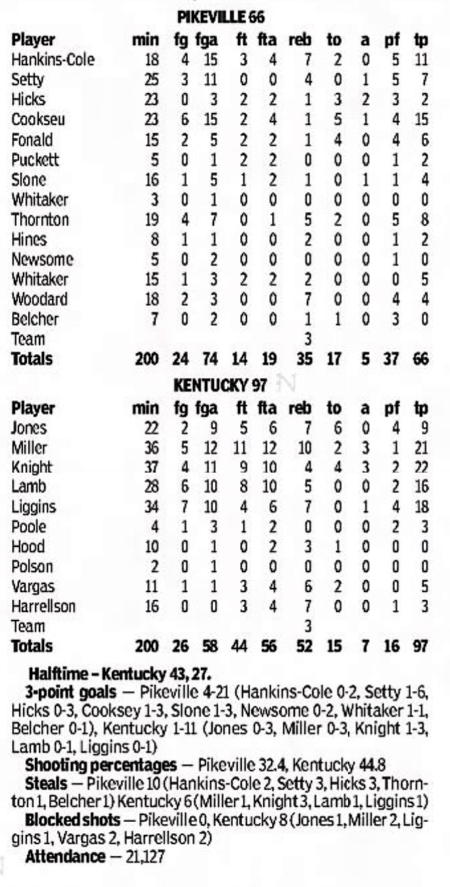 | 10/31/2007 | Pikeville | W | 99-64 | Exhibition  |