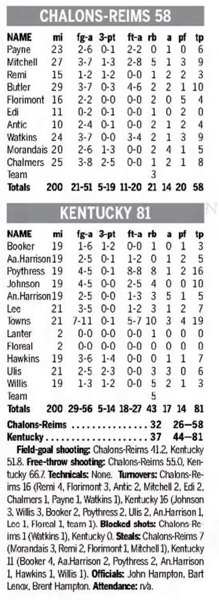 | 8/16/2014 | Champagne Chalons-Reims Basket | W | 77-72 | Exhibition (at Nassau, Bahamas)  |