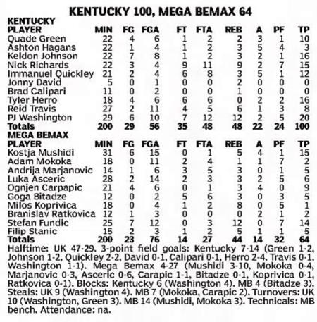 | 11/6/2001 | Nike Elite | W | 107-80 | Exhibition  |