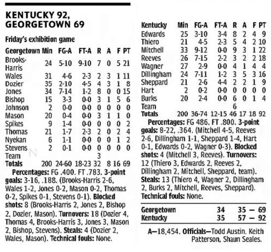| 11/9/2005 | Georgetown College | W | 85-63 | Exhibition  |