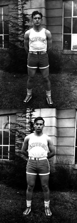 This catastrophe took place at College Park, Maryland, in the last game of the "Wildcats" Eastern trip. This was the third exceptionally hard game in four days, and the Blue seemed dead on their feet. Bewildered and unable to penetrate Maryland's five-man defense, in their small gym, Kentucky was behind at the half by 16-1. Elmer Gilb scored the only field goal of the game for the Blue. Radice, with a total of ten points, contributed largely to our downfall, although each of his teammates averaged five points apiece.